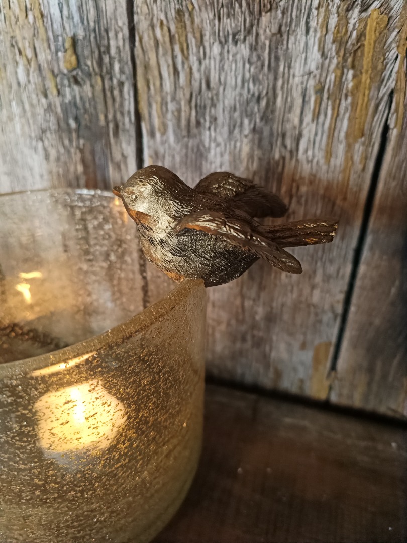 Vogel polystone voor op de rand van een pot, vaas of windlicht.