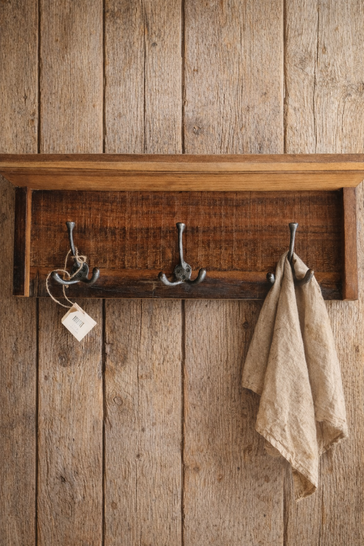Houten kapstok met metalen haken
