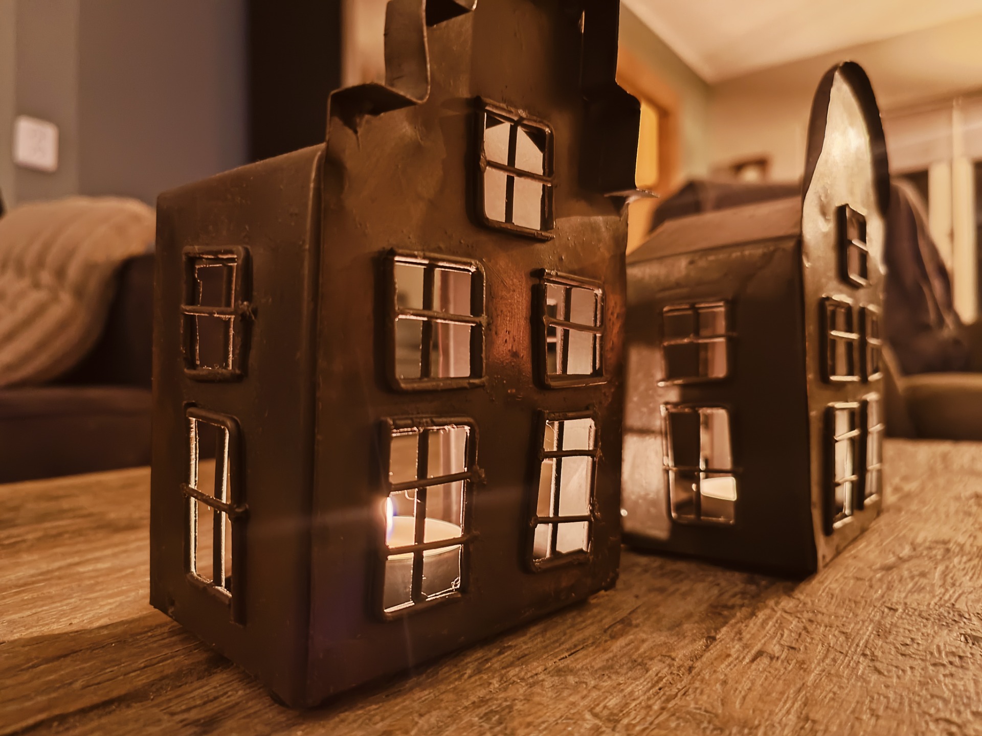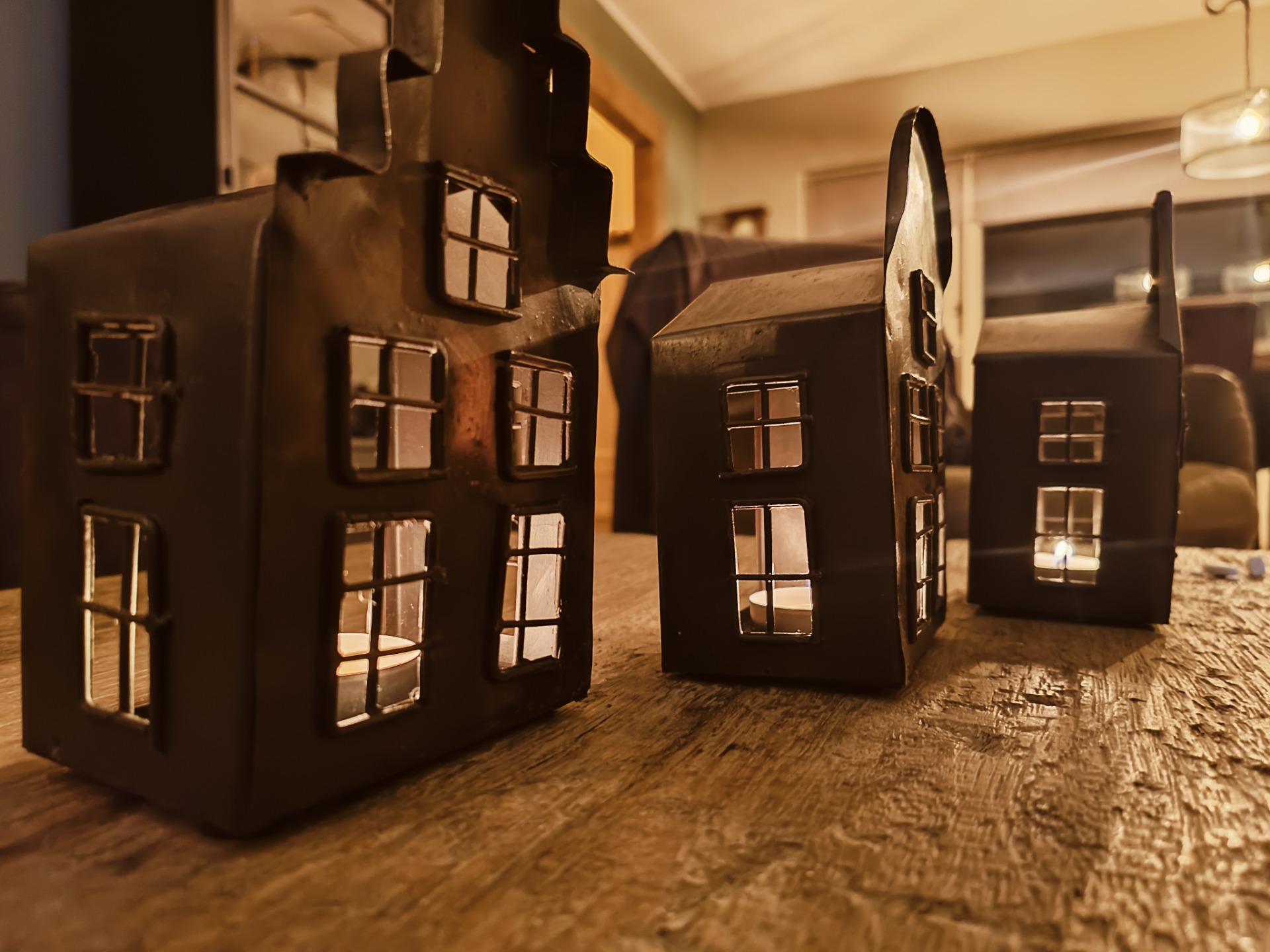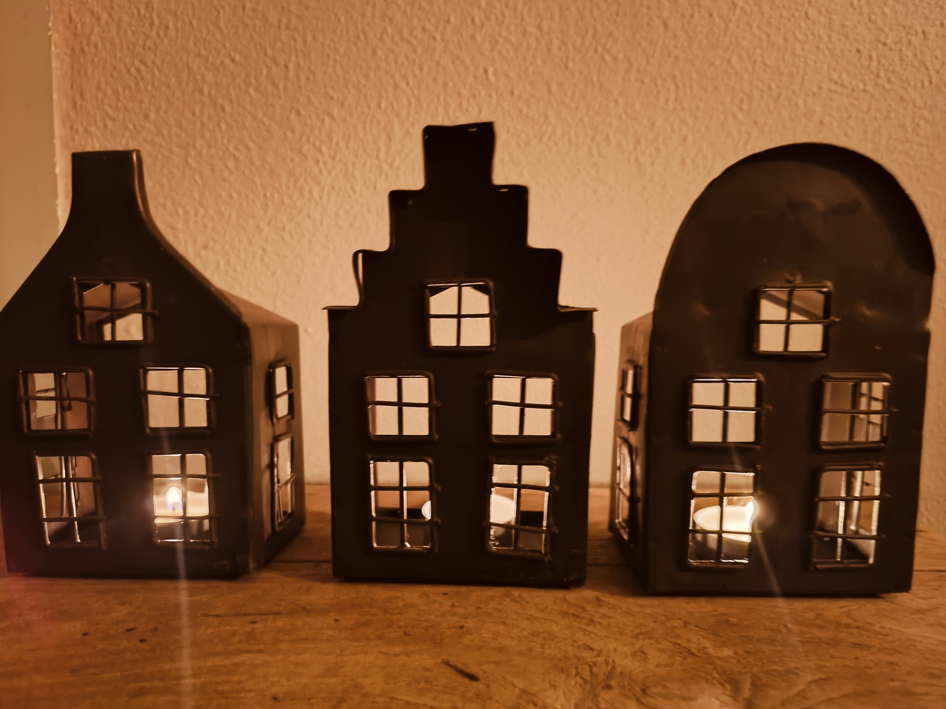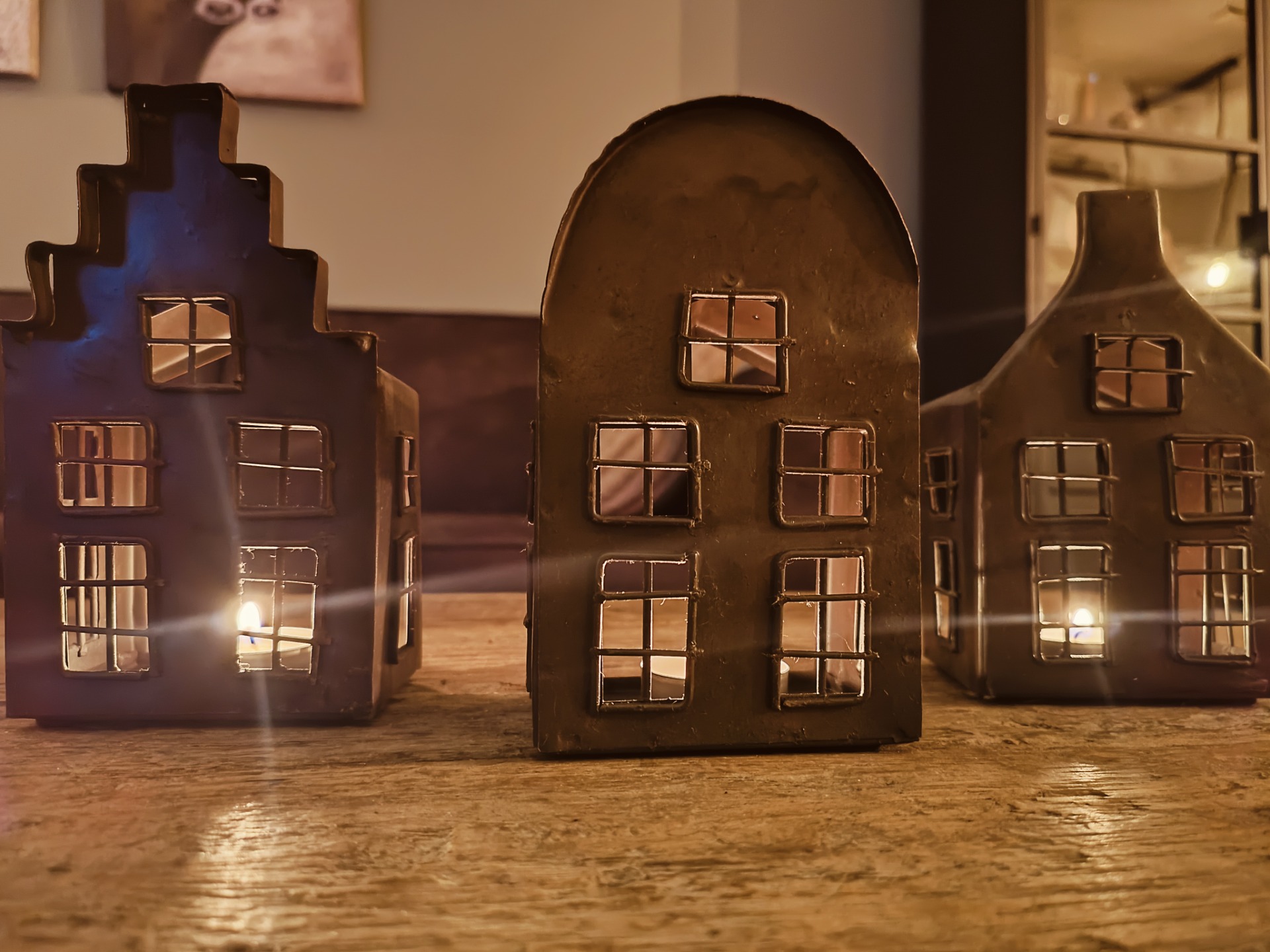 Set van 3 metalen huisjes